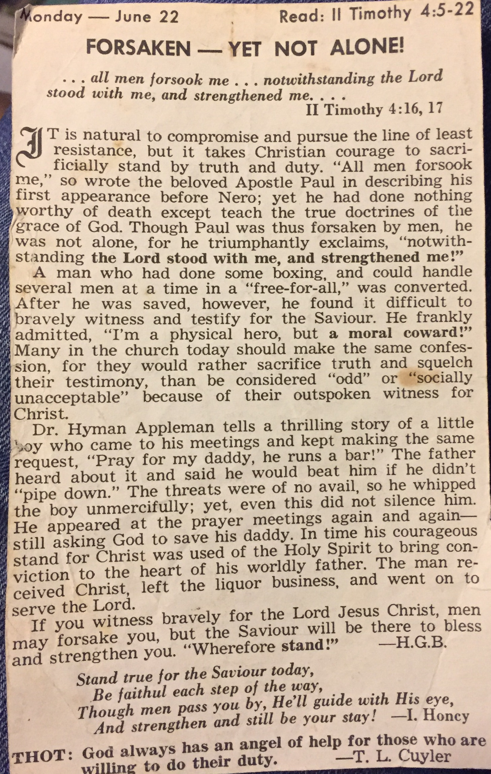 Secondly, I realize that the untimely death of my Daddy when I was 7 also caused substantial trust issues, especially where God is concerned. When I began to understand how sick my Daddy was, I prayed and believed that God would heal him. When my Dad died, I felt as if God had abandoned me. I felt as if He didn’t care. He felt like a cruel and ruthless God to me. I failed to understand that God heard and answered my prayers just in a different way than I wanted.
