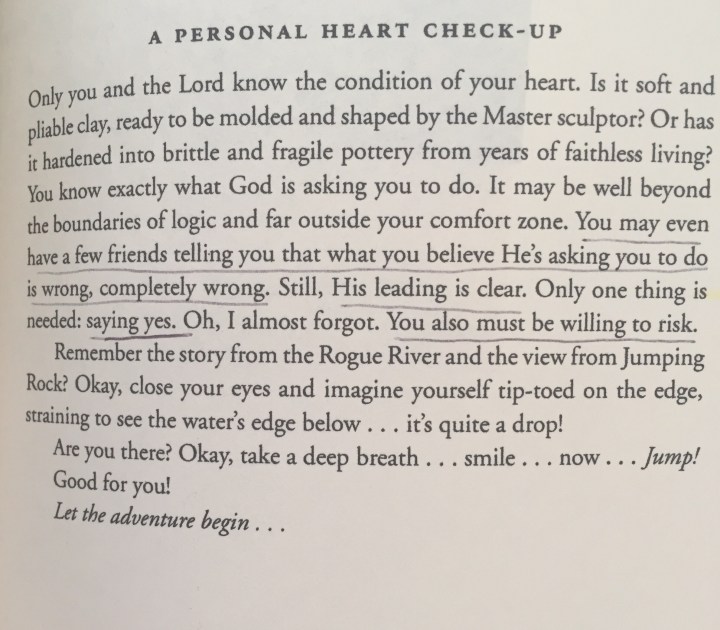 Suddenly, my heart sank into my chest and anxiety took over. I told Terry every reason I could conjure up why we shouldn’t go through with the move. I cried like a baby. He looked at me and said, “You know if this is going to cause problems for us and you don’t want to do it; I’ll back out now.” The earnest in his voice, coupled with the mere truth that God had been directing our path, quieted my anxious emotions. Then I began telling him all the reasons I knew this was the right thing to do. As I began verbalizing how God led us to this place and how every detail was working itself out, a calm assurance washed over me and I said, “How can I not go where God is leading? I would rather have a little anxiety over the thought of change than not walk in obedience to Him. Been there done that and it’s not a good place.”
