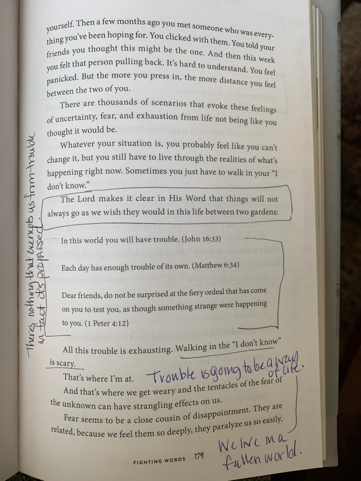 Side note: If you haven’t read the book, I highly recommend it. It is a story all of us can find a connection with because we all have things that don’t got according to our plans, hopes or dreams! (I would offer to share my copy but I’ve marked it all up)