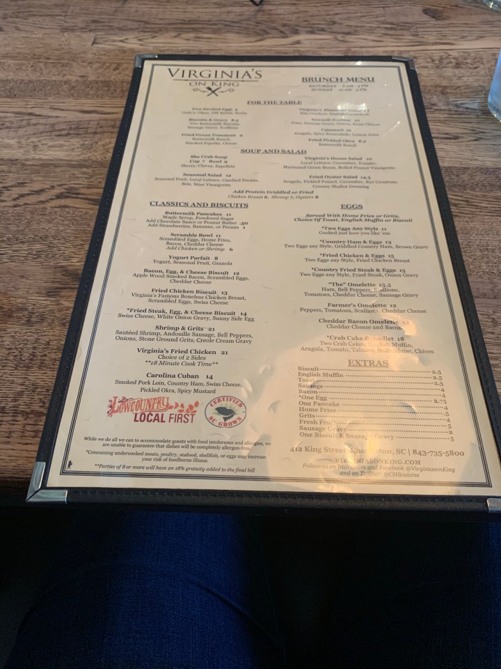 For brunch, we decided to give Virginia’s on King a try. Partly because Terry saw fried chicken and biscuit on the menu.